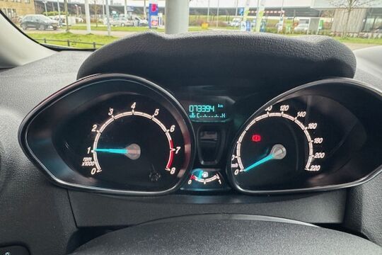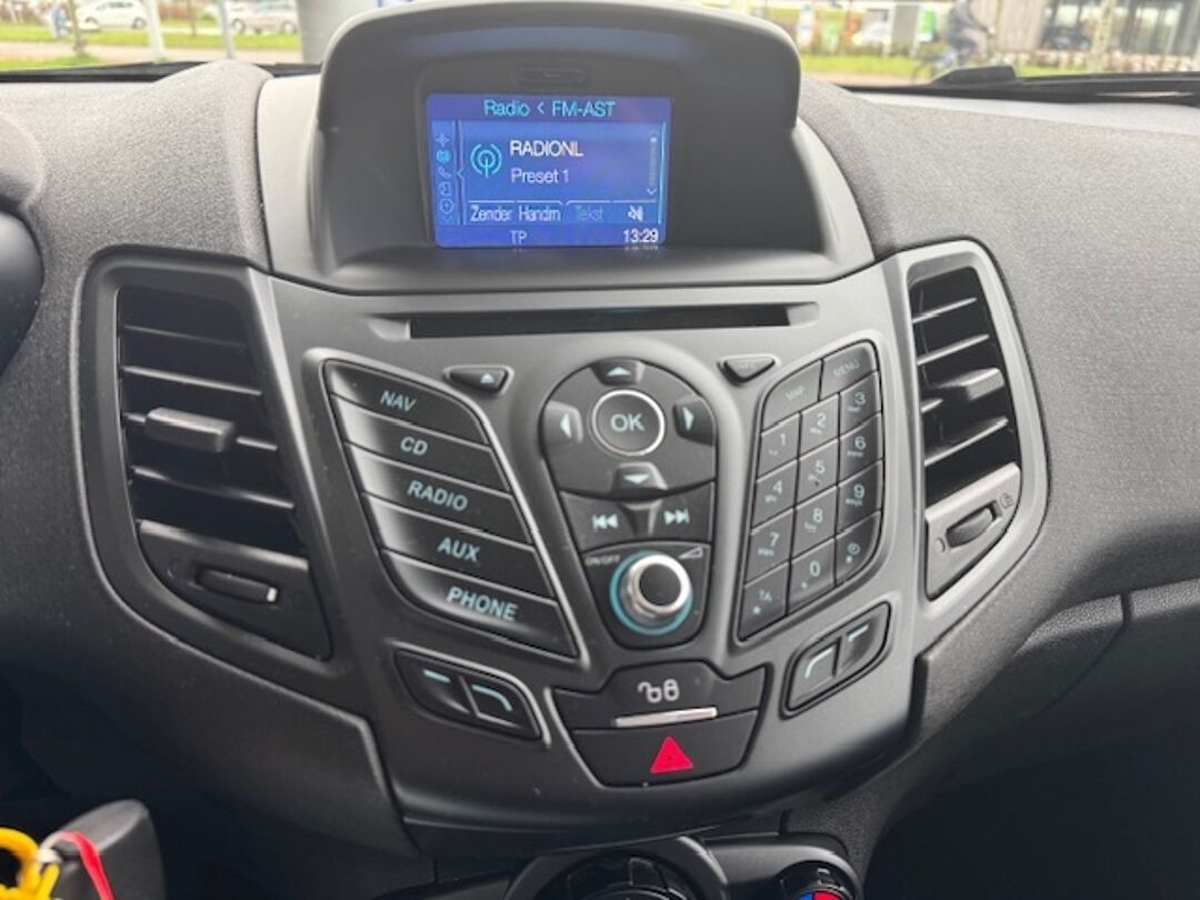 Spraaksturing betekent dat u verschillende functies met uw stem kunt bedienen. Je weet altijd waar je moet zijn, dankzij het navigatiesysteem. U kunt bij het inparkeren natuurlijk niet aan alle kanten ogen hebben. Daarom is deze Ford Fiesta voorzien van parkeersensoren! Op een rustige weg komt de cruise control helemaal tot z'n recht. In een auto als deze mag u ook airconditioning verwachten. Met lederen stuur, centrale deurvergrendeling met afstandsbediening, boordcomputer en lederen versnellingspook is deze auto helemaal compleet.